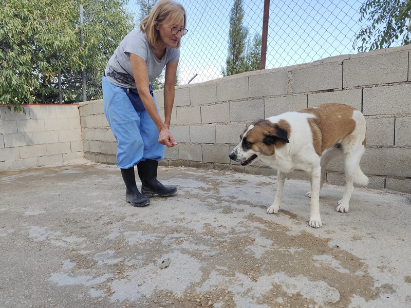 Unsere Tierschützer berichten: Laguna tauchte eines Tages hungrig und durstig im Olivenhain hinter dem Tierheim auf. Die Tierschützerinnen fütterten die Fellnase jeden Tag, um ihr Vertrauen zu gewinnen. Laguna hielt zunächst Abstand, waren ihr die fremden Menschen doch nicht geheuer, doch nach und nach gewöhnte sie sich an die täglichen Besuche der Tierheim-Mitarbeiterinnen und näherte sich ihnen behutsam an. Es war schön zu bemerken, wie sich diese vorsichtige, imposante Straßenhündin gegenüber den tierischen Streetworkerinnen öffnete. Nachdem die fellige Schönheit anderthalb Monate gefüttert wurde, kam sie ganz freiwillig mit ins Refugio und zog dort ein. Im Tierheim zeigte Laguna sich zwar als etwas schüchtern, aber auch als veränderungskompetente Hündin, die sich schnell an neue Situationen anpassen kann.