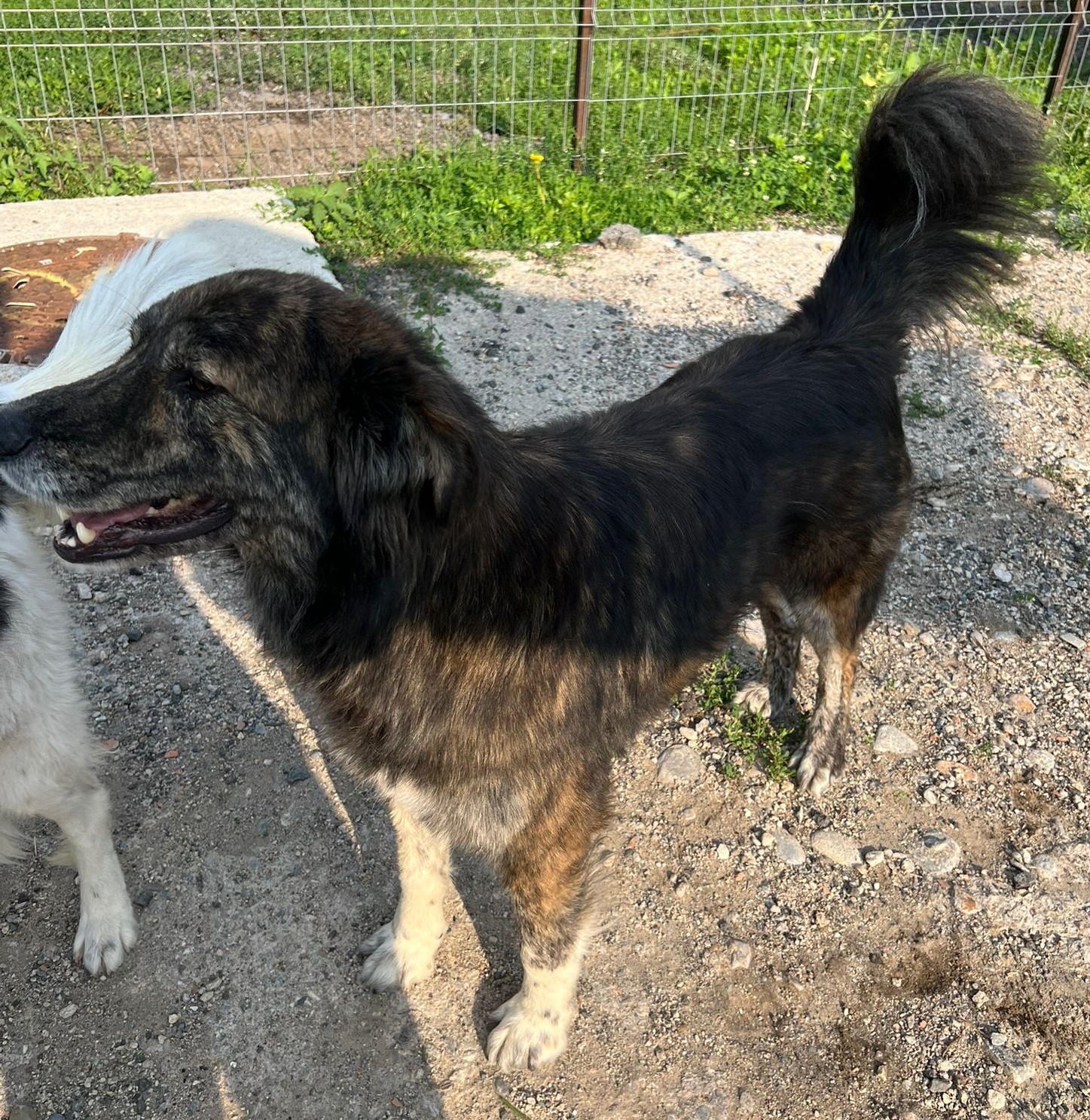 Schließlich schaffte Maria es, beide Hunde in einem privaten Shelter in Cluj unterzubringen. Dort leben sie nun seit Mai 2025, in einem kleinen Zwinger. Ja, sie sind sicher, ihr Leben ist derzeit nicht in Gefahr, aber es ist kein gutes Leben. Tiger sehnt sich nach Familienanschluss, er möchte wieder den Kontakt zu Menschen, er möchte dazugehören. Er lässt sich streicheln, er liebt den Kontakt zum Menschen. Tiger ist ein relativ großer Hund, er freut sich über Auslauf, über Bewegung, über Beschäftigung.
