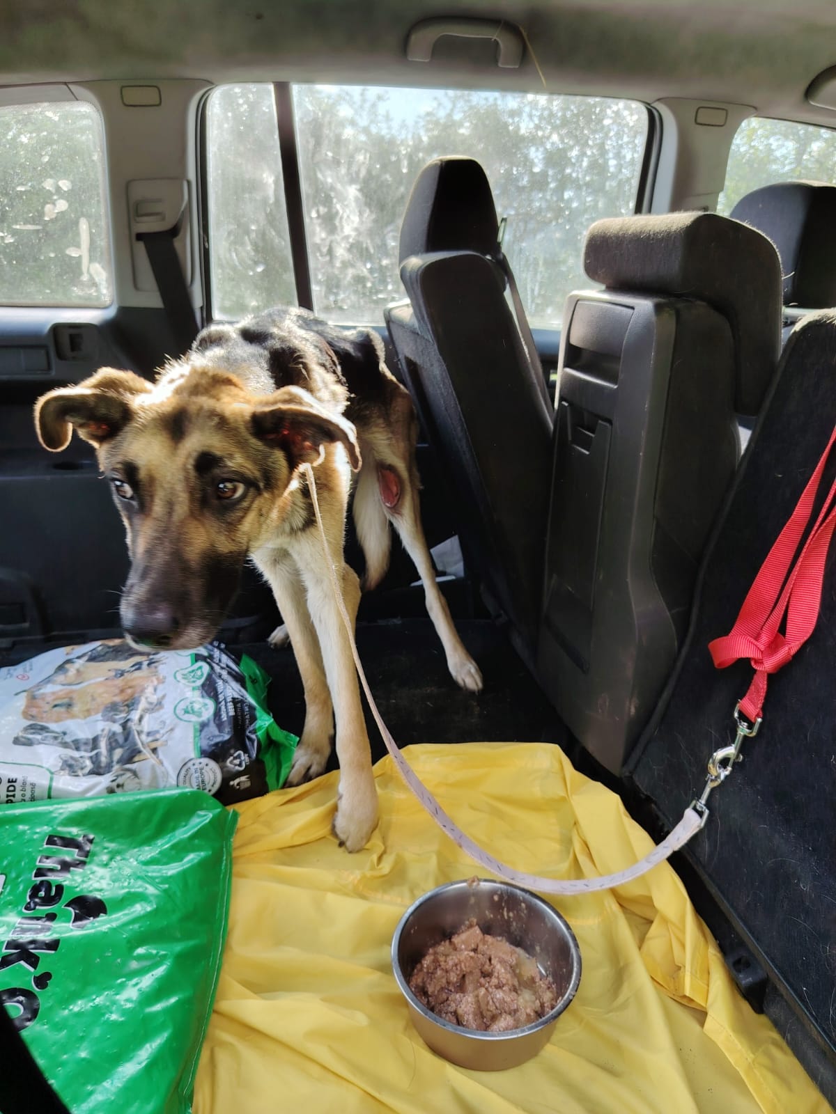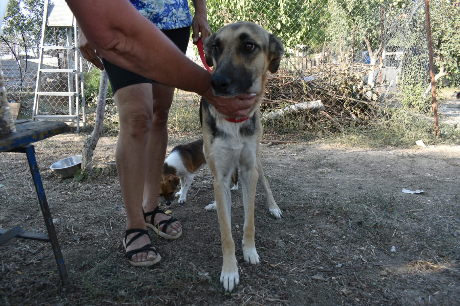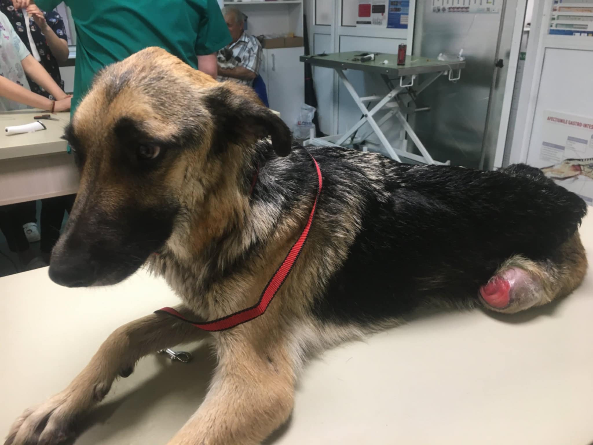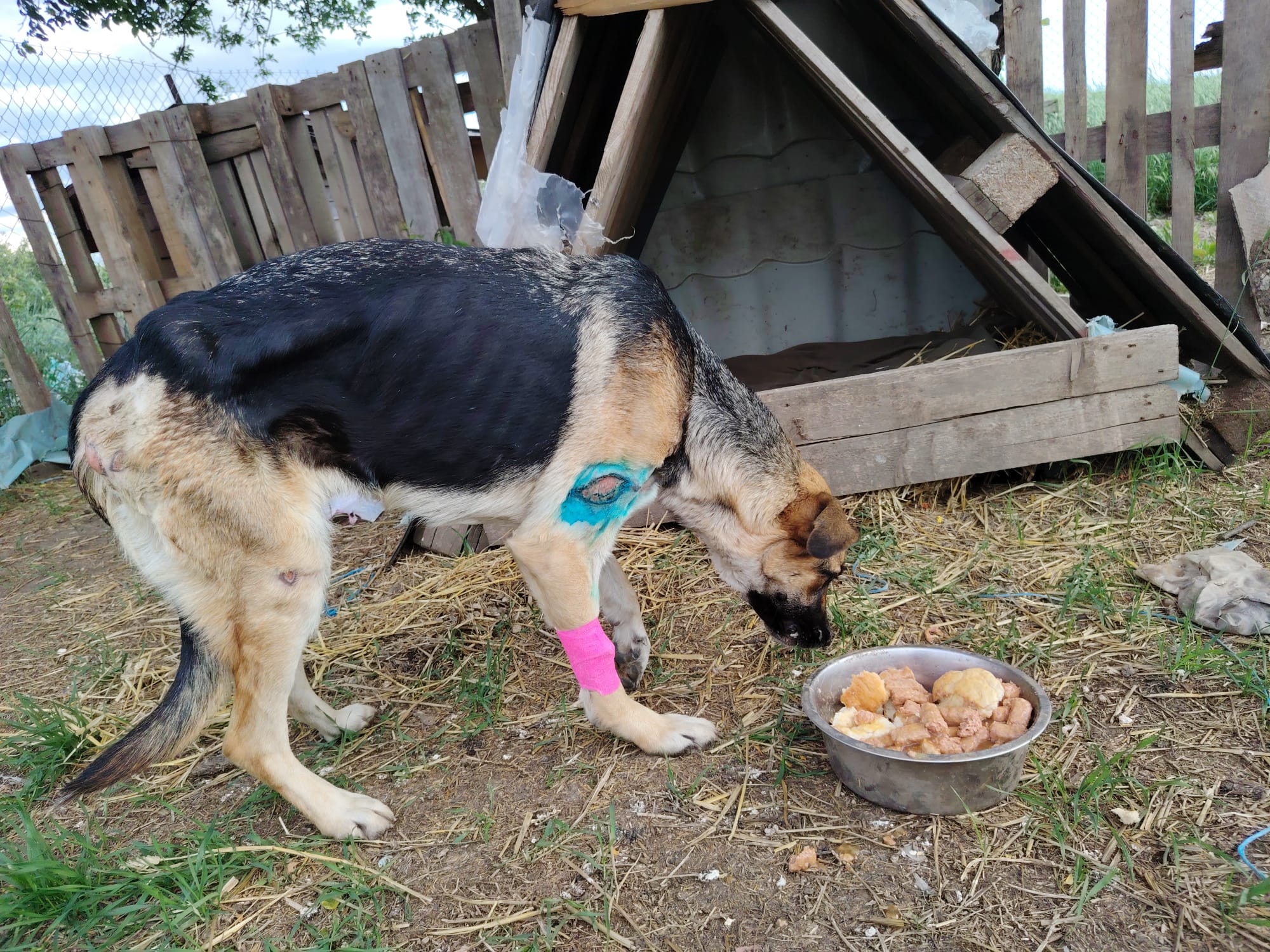 Unsere Tierschützer berichten: Auf ihrer täglichen Fahrt zur Versorgung der Straßenhunde an bestimmten Sammelplätzen folgte unsere Paula einem kläglichen Geräusch aus dem Wäldchen von Targu Jiu. Der Anblick dessen, was sie vorfand, war schwer zu ertragen. Senta, wie sie später getauft wurde, lag verletzt und bis auf die Knochen abgemagert in hohem Gras. Als sich Paula ihr näherte, wollte sie flüchten, hatte jedoch keine Kraft mehr dazu. Unsere erfahrene Paula gab Senta zunächst Futter und Wasser und eroberte in den folgenden Tagen Stück für Stück Sentas Vertrauen. Dann war es soweit, und sie konnte Senta mitnehmen. Mit Senta auf dem Arm kämpfte sie sich durch die Schlammmassen, die der Regen verursacht hatte, und fuhr geradewegs in die Tierklinik. Senta hatte am ganzen Körper offene Wunden, eine Fehlstellung des linken Vorderbeines und war völlig verdreckt und unterernährt. Sie wurde hygienisch und medizinisch versorgt und geröntgt. Ihr linkes Knie zeigte einen „alten Bruch“, der falsch zusammengewachsen war. Eine Operation würde in diesem Fall laut Einschätzung der Tierärzte keine verbesserte Lebensqualität zur Folge haben. Das Bein würde steif bleiben und Senta letztendlich mehr Probleme bereiten als ihr jetziger Zustand. Inzwischen kann sie sich mit ihrer Beeinträchtigung gut bewegen, aber natürlich keine langen Spaziergänge absolvieren.